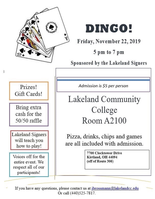 Returning Event (Fri 11/22/19): Lakeland Signers to host DINGO Posted bymentoraslgroupNovember 10, 2019June 6, 2021Posted inUncategorizedTags:American Sign Language, ASL, ASL Event, ASL Social, Deaf Culture, Dingo Night, Greater Cleveland Deaf Community, Kirtland Ohio, Lakeland Community College, Lakeland Signers, Northeast Ohio Deaf community, Returning Event 41.637831 -81.365378 Share this:TweetShare on Tumblr Click to share on WhatsApp (Opens in new window) WhatsApp Click to email a link to a friend (Opens in new window) Email Like Loading... Related