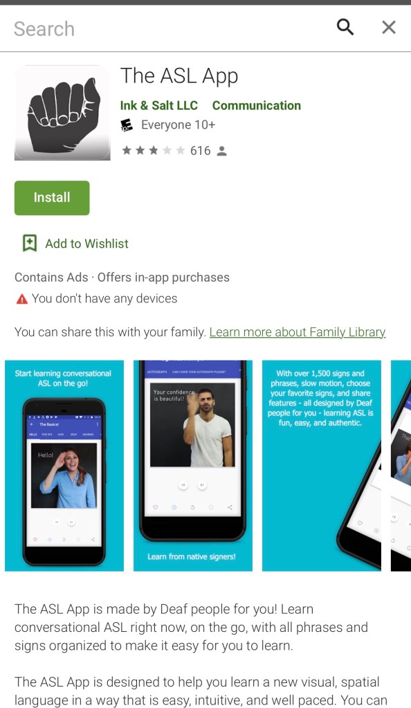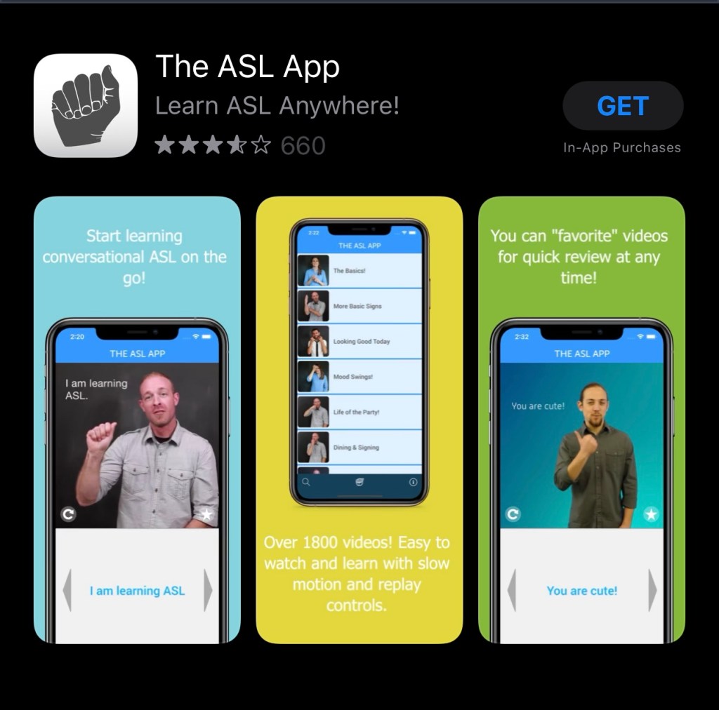 The ASL App – just search for “The ASL App” in The App Store or Google Play! It’s free to download!